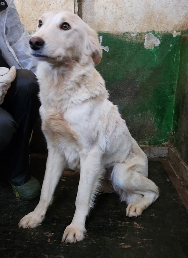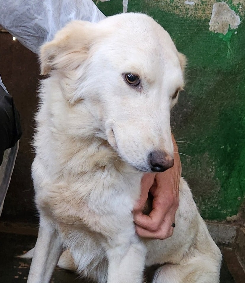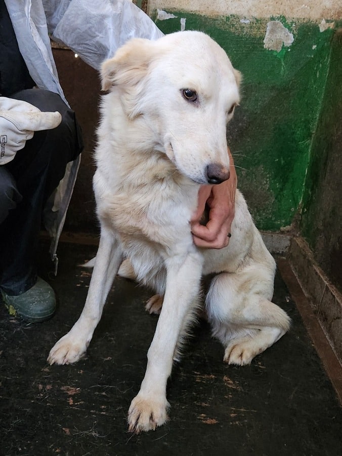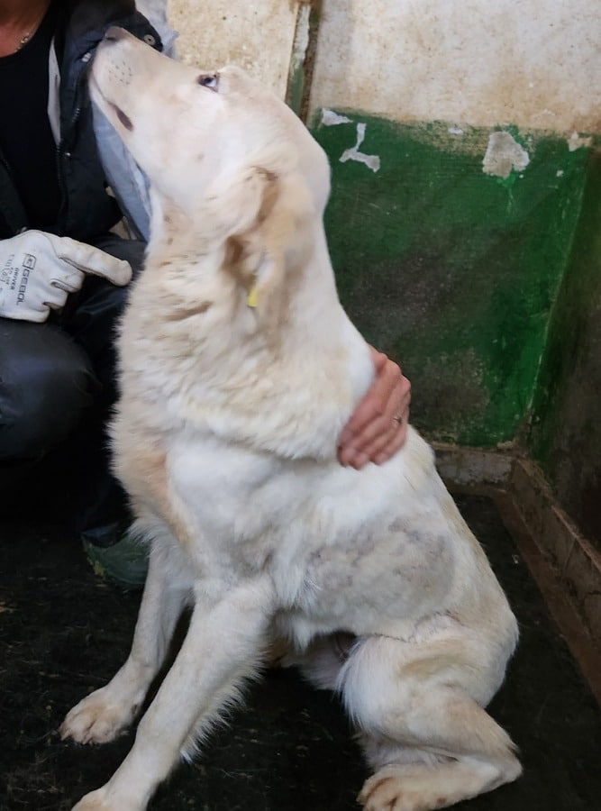 Diese absolut anschmiegsame ZAZIE, die aktuell im dunklen Vetkennel sitzt, fiel uns gleich durch ihre liebenswerte und freundliche Art auf. Sie genoss die Streicheleinheiten so sehr, dass sie auch die mitgebrachten Leckerchen erst einmal nicht zur Kenntnis nahm. ZAZIE wirkte sehr menschenbezogen da sie ständig unsere Nähe suchte. Wir vermuten das sie Welpen hatte. Die Narbe an ihrer linke Flanke lässt annehmen das sie einmal eine Verletzung hatte.