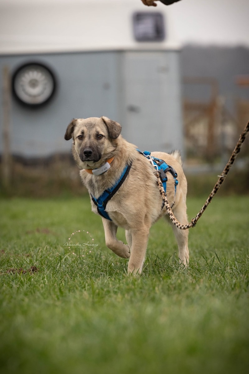 Ziegen, Hühner, Pferde, Ponys und Esel interessieren ihn nicht. Diese kennt er bereits, da sie hier mit auf dem Hof leben. Er ignoriert sie. Wir können uns Ziggy gut als Familienhund in einem entspannten Haushalt vorstellen.