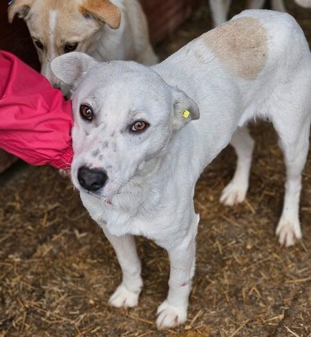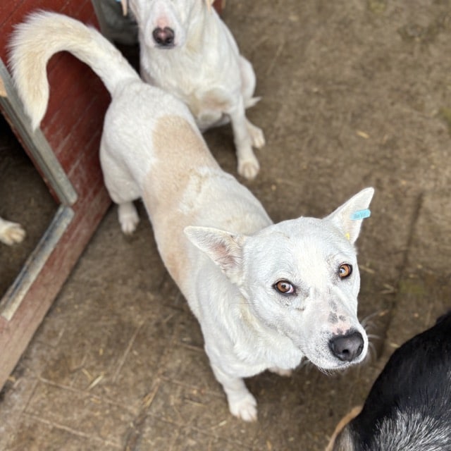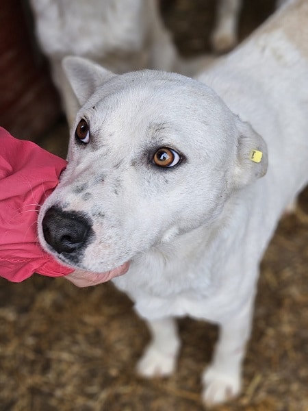 Unser wunderschöner ZIMO ist eine wahre Augenweide! Mit seinen niedlichen Ohren, den ausdrucksstarken Äuglein und seiner süßen, gescheckten Schnute hatte er uns alle direkt um den Finger gewickelt. Doch ebenso besticht dieser tolle Kerl mit seinem aufgeschlossenen und liebenswerten Charakter. ZIMO war die ganze Zeit in unserer Nähe und sehr interessiert an allem, was wir machten. Wir konnten in keine Hütte schauen, ohne dass er sein Köpfchen mit hinein steckte und alles genau inspizierte. Dabei verteilte er auch immer wieder das eine oder andere Küsschen. ZIMO ist ein wahrer Schatz und liebt den Menschen sehr. Er wäre sicher ein treuer Begleiter, mit dem man so manche Abenteuer erleben kann – dies würde er nur zu gern unter Beweis stellen. Wir hoffen, dass dieser liebe Kerl schon bald diese Chance erhält.