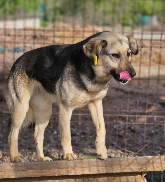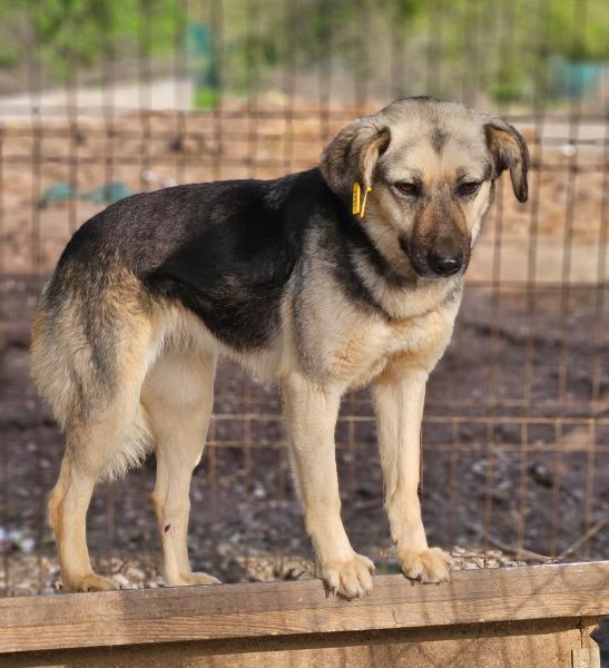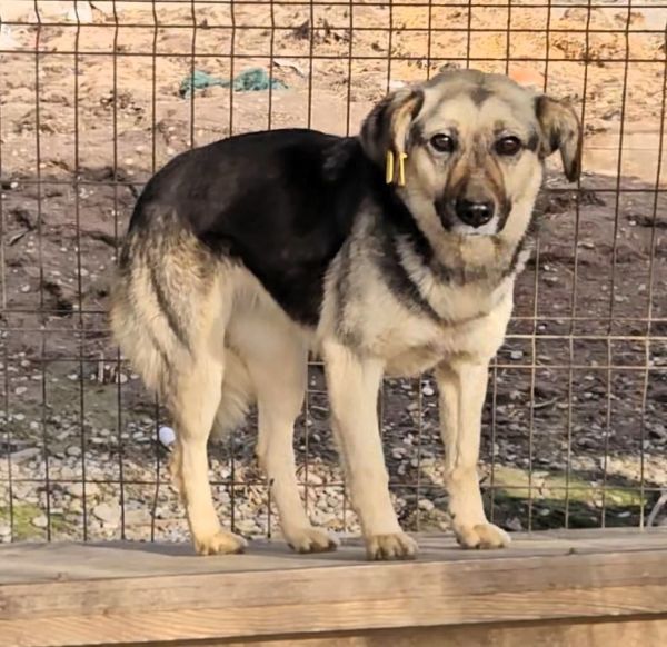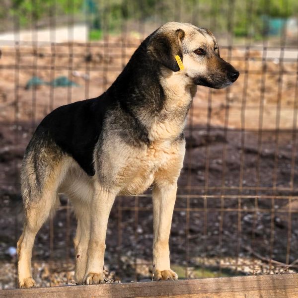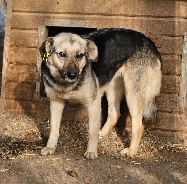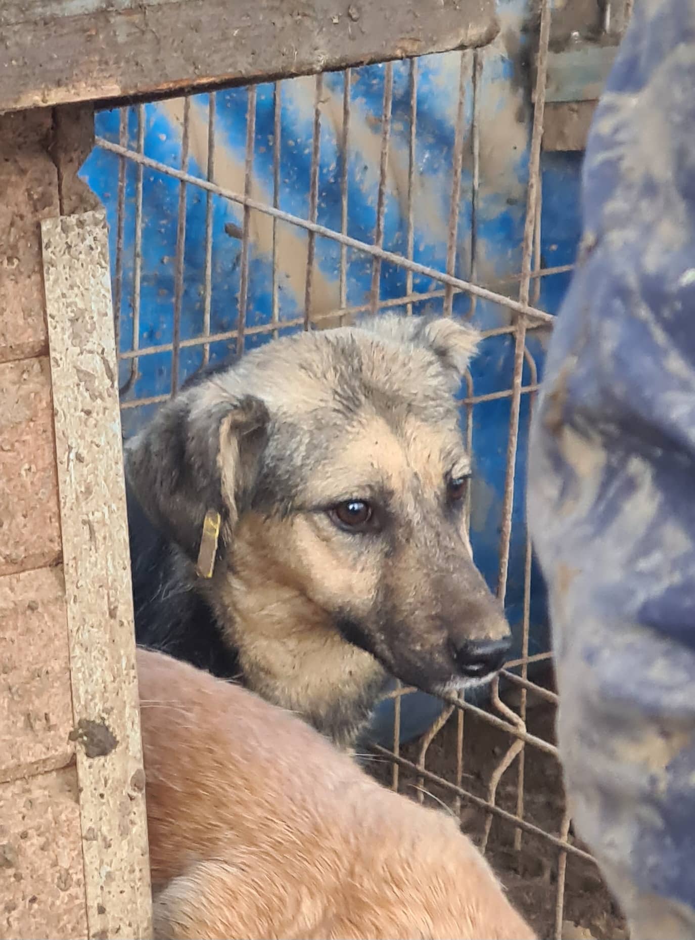 ZISAN hat sich bei unserem Besuch als Hündin entpuppt. Sie beobachtete uns neugierig vom Hüttendach, als wir uns mit den anderen Hunden beschäftigten. Die hingeworfenen Leckerchen nahm sie gerne vom Boden mit Sicherheitsabstand. Als wir uns ihr zuwandten, wurde sie unsicher, wich aus und versteckte sich in einer Ecke. ZISAN braucht Menschen, die erfahren im Umgang mit unsicheren Hunden sind. Ein netter Ersthund, an dem sie sich orientieren kann, würde ihr die Eingewöhnungszeit sicher erleichtern.