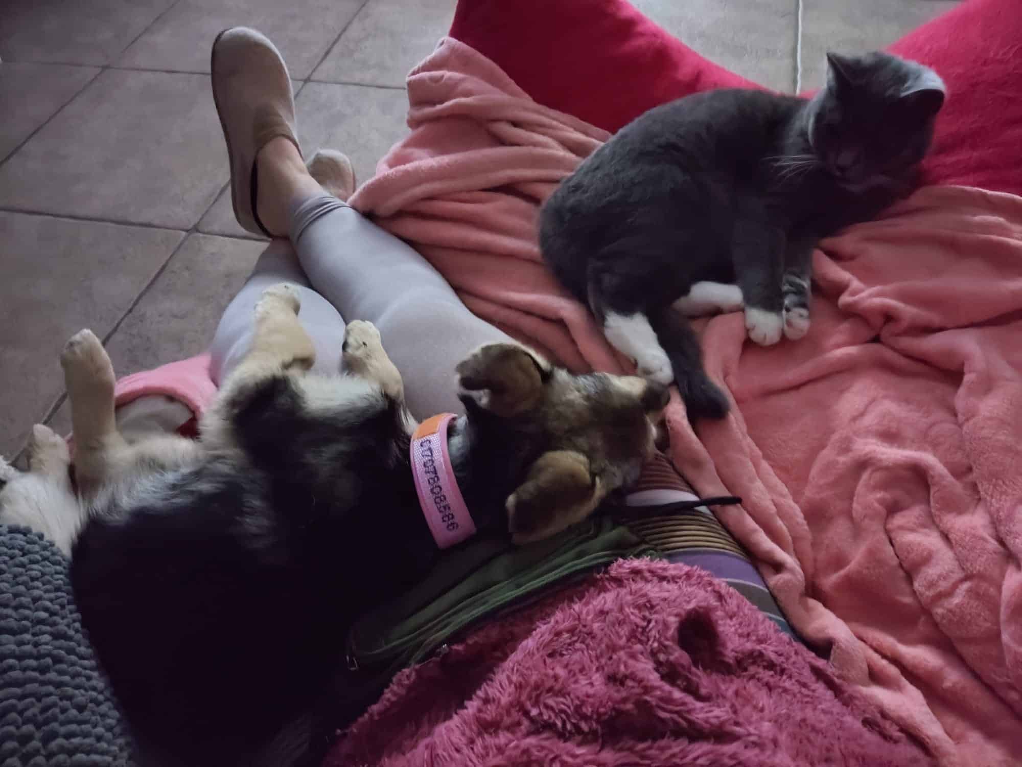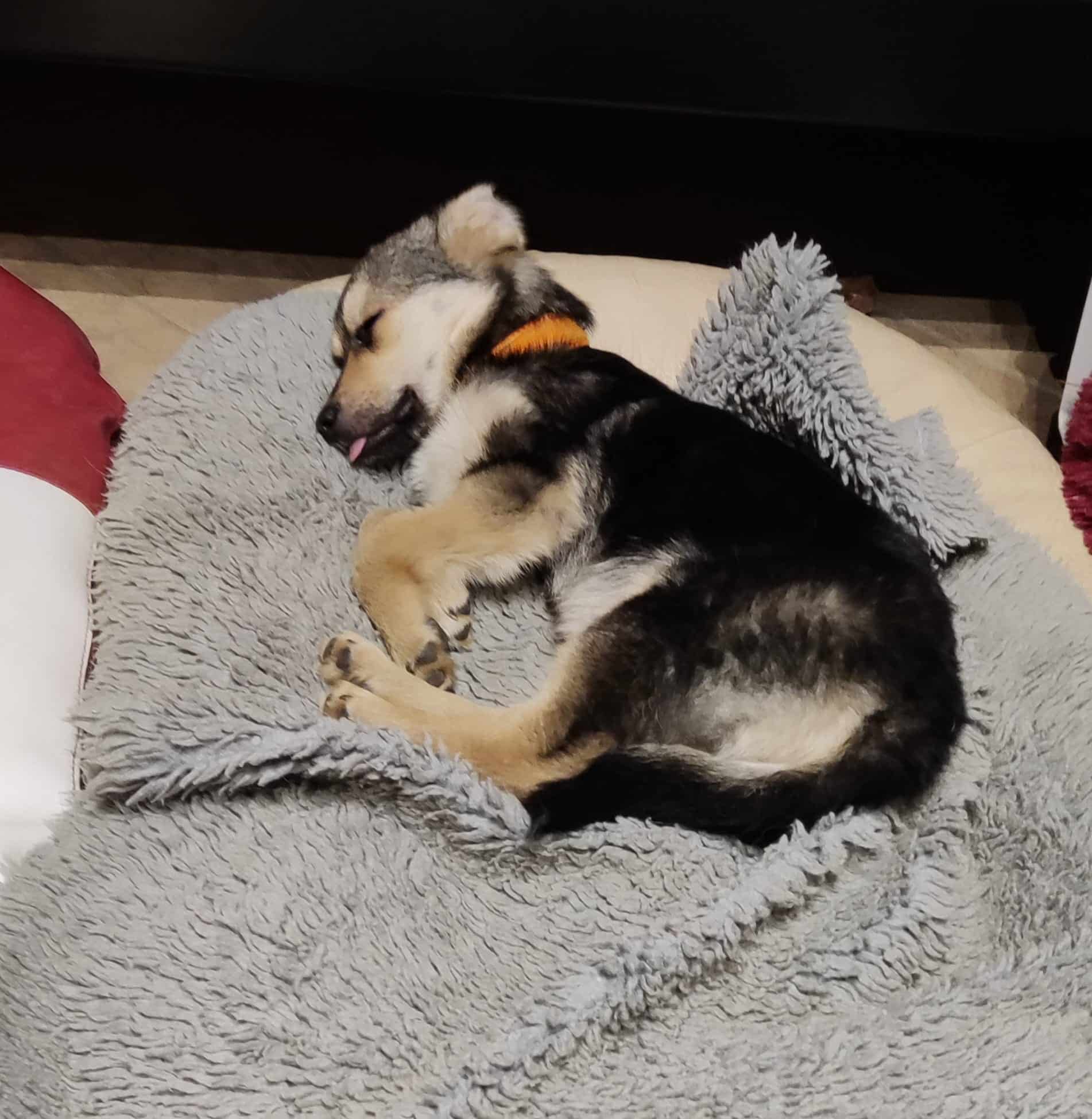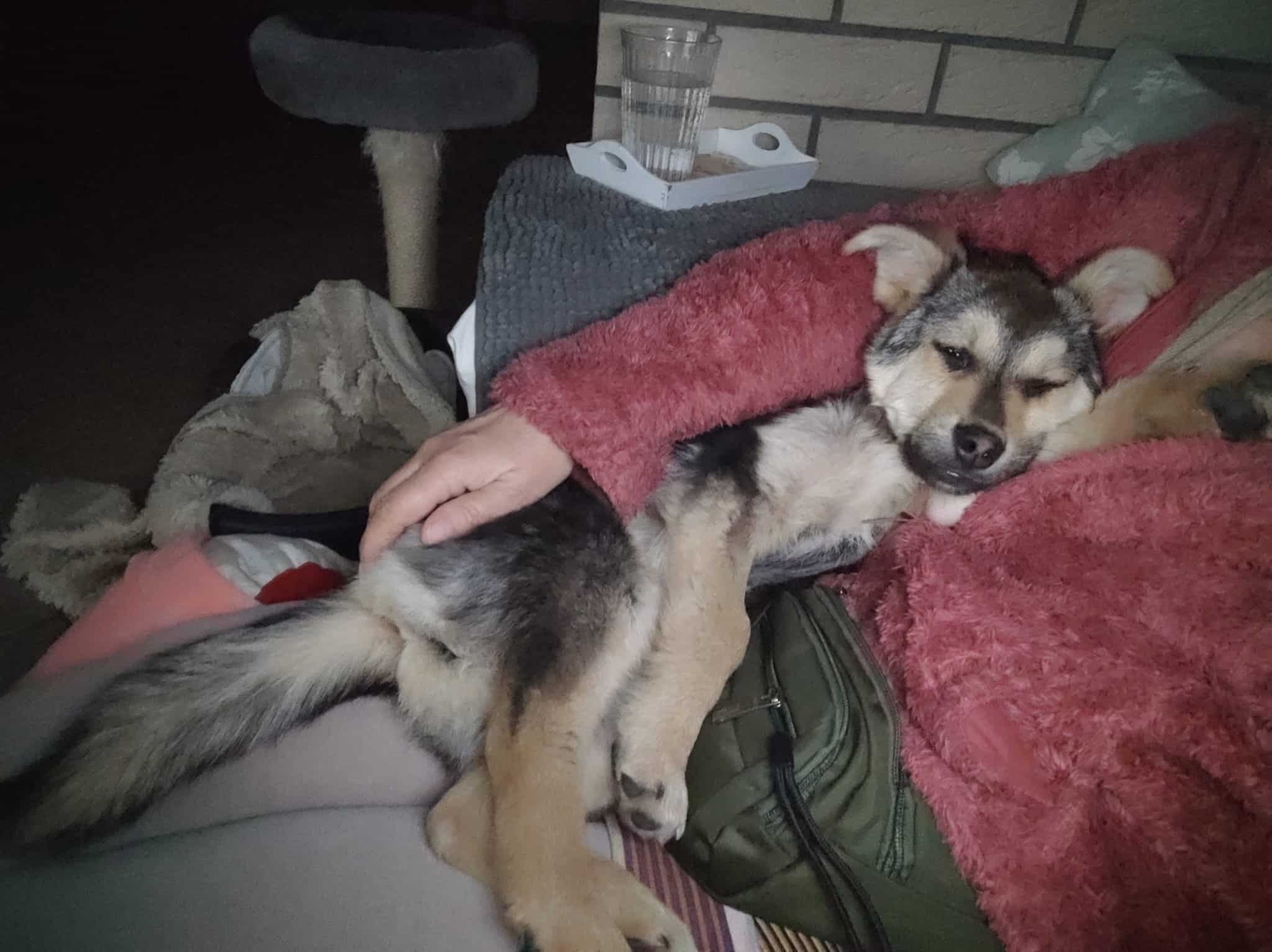 Im Haus ist sie ruhig, kann gut runterkommen, Bürozeiten werden ordnungsgemäß eingehalten. Die Körbchen werden gerne genutzt und auch mit ihren PS-Geschwistern oder den Katzen geteilt. Am allerliebsten allerdings mit dem PS-Frauchen; Körperkontakt und Kuscheln muss unbedingt sein. Ein unbeschreibliches Gefühl, das Herz wird einem warm, wenn dieser kleine Körper sich vertrauensvoll an einen schmiegt und man spürt – hier ist die Welt für sie in Ordnung, hier fühlt sie sich sicher.