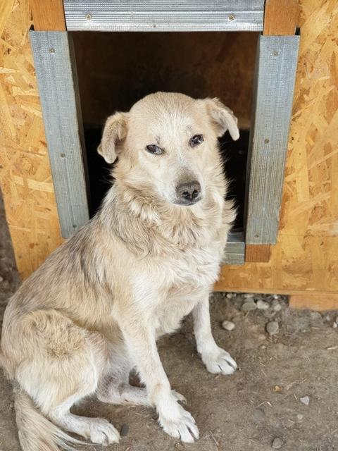 ZOLA ist eine schüchterne und zurückhaltende Hündin, die nur in ihrer Hütte sitzt. Trotzdem schaute sie immer wieder neugierig aus der Hütte, was wir so treiben.