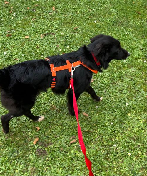 Während sie im Haus sehr souverän ist, zeigt sie sich beim Gassi als sehr vorsichtig und etwas unsicher. Laute Fahrzeuge, Menschengruppen oder großen Hunden möchte sie aus dem Weg gehen. Hier muss auf jeden Fall noch mit ihr gearbeitet werden. Aber sie ist auch erst seit kurzer Zeit in Deutschland und alles ist neu für sie. Trotz ihrer Unsicherheit geht sie dennoch gerne Gassi: wenn wir im Garten sind, stellt sie sich vor die Garagentür, von wo aus wir unsere Ausflüge immer starten.