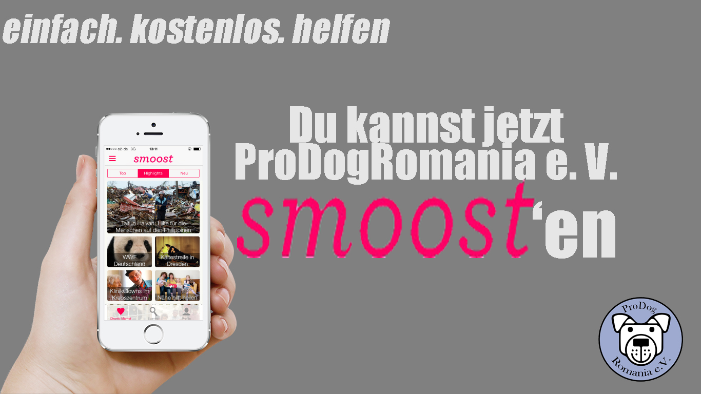 Mit smoost siehst du dir Werbung an und lenkst die Erlöse an ProDogRomania e. V. weiter.