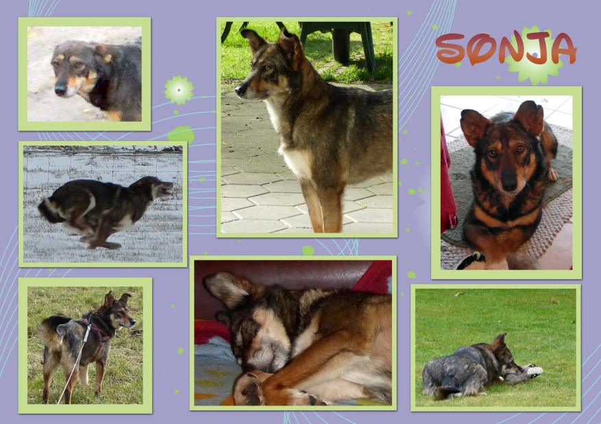Sonja wurde erwischt, wie sie – aus Hunger – einem Huhn nachstellte, gefangen, gefesselt und in einen Sack gesteckt und sollte zu Tode kommen. In letzter Sekunde wurde sie von einem guten Menschen gerettet und zu Mishu in sein Tierheim gebracht.