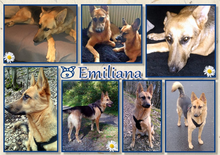 Emiliana kommt aus Ploiesti. Sie war meine Patenhündin und als sie dann im letzten Juli endlich auf PS nach Deutschland kam, habe ich sie besucht. Von da an war mir alles klar, wir gehören zusammen. Ich habe sie adoptiert. Emiliana wird nun hauptsächlich Emi genannt und sie ist so eine treue Seele. Sie liebt es mit uns durch die Wälder zu streifen, lernt super gern und tut alles um zu gefallen. Aber ihre Lieblingsbeschäftigung ist mit mir zu kuscheln oder zu verreisen. Egal ob im Auto oder mit dem Zug, sie möchte überall dabei sein. Das einzige was ihr noch Angst macht ist der Staubsauger und Gewitter, ansonsten ist sie sehr selbstsicher. Ich liebe sie über alles!