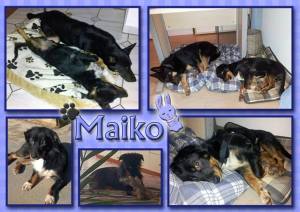 Maiko kam erst kürzlich aus dem Bucov-Tierheim Ploiesti zu uns. Auf der Heimfahrt im Auto war er ganz entspannt, als wäre das für ihn die normalste Sache der Welt. Gegenüber unserer Hündin Nora zeigte er sich zuerst dominant, da gab es anfangs auch mal Krach zwischen den beiden, aber das hat sich nach kurzer Zeit gelegt und Maiko hat sich prima eingefügt. Auch im Freilauf versteht er sich toll mit anderen Hunden und begegnet Menschen freundlich und aufgeschlossen. Sein allergrösstes Hobby ist im Feld nach Mäusen zu suchen und Löcher zu buddeln. Als ich damals das Vermittlungsfoto von Maiko gesehen habe, habe ich mich sofort in seine Augen verliebt.