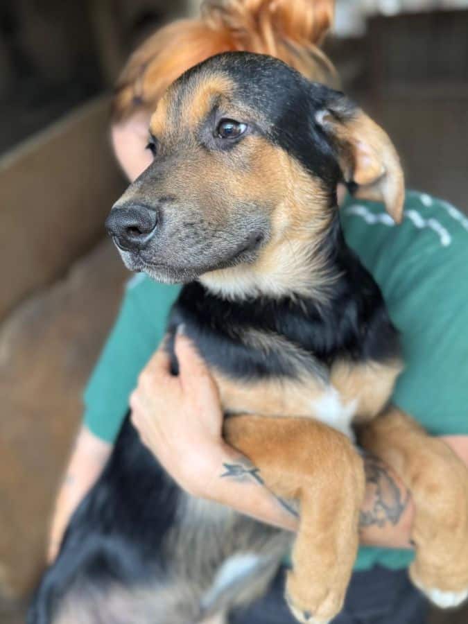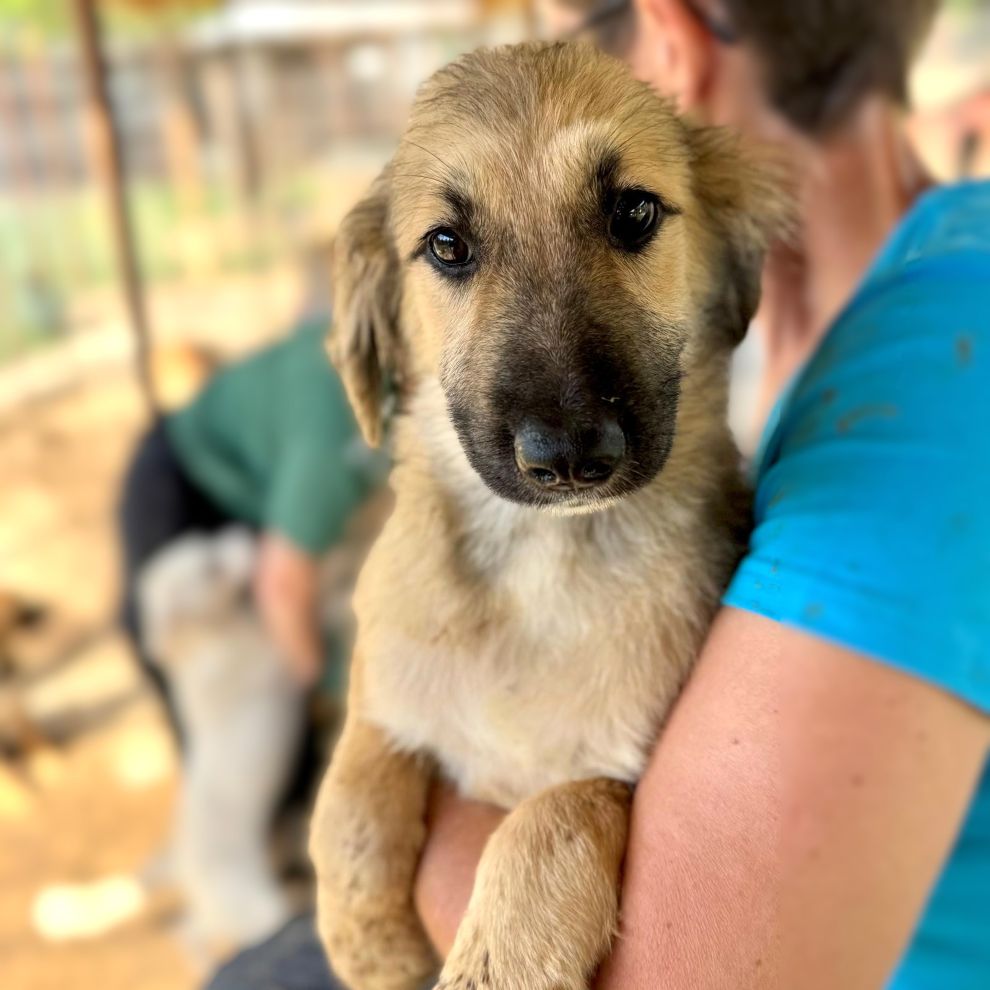 Auch durften wir ohne Probleme „ihre“ Welpen anfassen, streicheln und hochheben. Warum wir „ihre“ in Anführungszeichen setzen? Sie hat die 3 Wonneproppen bedingungslos adoptiert, die ohne Mama im Shelter angekommen sind. Die Kleinen hätten sich keine bessere Ersatzmama vorstellen können. Genauso geduldig und sanft wie sie uns gegenüber ist, erzieht sie auch die Welpen.