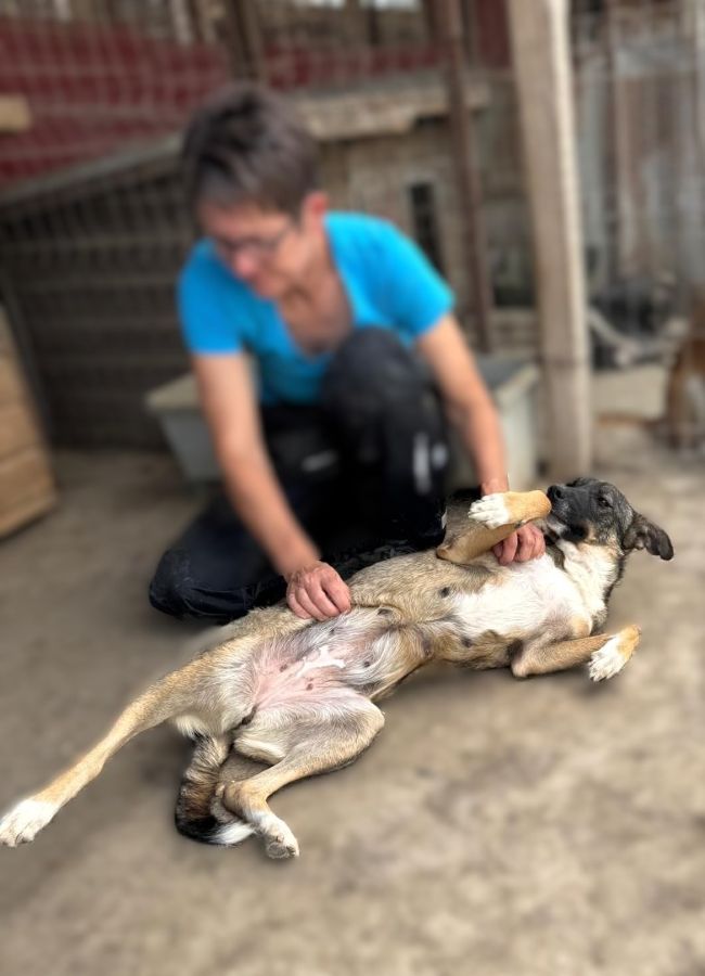 Sie ließ sie gerne überall anfassen und streicheln und nahm unsere Leckerchen aus der Hand. Sie zeigte sich überaus neugierig und freundlich und ließ sich sogar ausgiebig den Bauch von uns kraulen. Eine wirklich tolle Hündin, die nicht länger ihr Leben im Shelter verschwenden sollte. MARIELA lebt in einem gemischten Rudel und scheint dort verträglich zu sein.