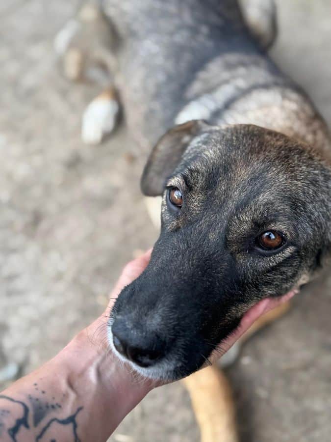 Diese ganz sanfte Hündin hat direkt unser Herz erobert, als wir den kleinen dunklen Kennel betreten haben. Nicht nur wegen ihrer rührenden Geschichte, sondern auch wegen ihrem ruhigen und tollen Wesen. Sie ist eher zurückhaltend und wartet geduldig bis sie an der Reihe ist. Sie drängt sich nicht in den Vordergrund und freut sich über jede Aufmerksamkeit, die sie bekommt. Sie lässt sich sehr gerne streicheln und suchte aktiv den Kontakt zu uns.